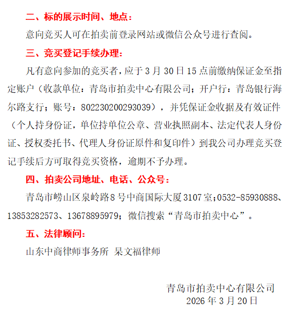 | 竞得 | 20260401015 | 1,119,418.00 | 2026-04-01 11:53:49 |