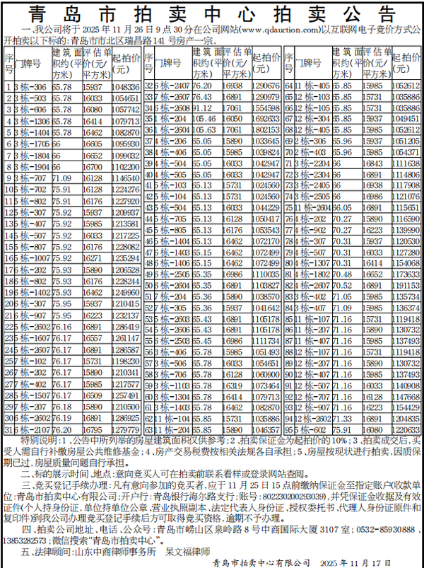 20251126青岛市瑞昌路141号房产一宗拍卖会 > > 【15】5栋-807